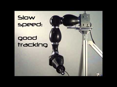 A 3-DOF arm, built with VSA-cube units, performing a circle on a wavy surface with a proper (selective) stiffness preset.