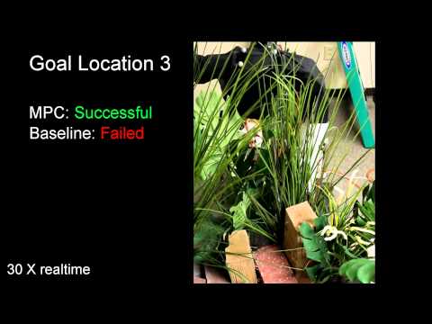In this video, our robot Cody attempts to reach to five different goal locations using four attempts (meaning four different base locations) for each goal. For each goal, we test our single-step, quasi-static, model-predictive controller against the performance of a baseline kinematic controller that has compliance at the joints.